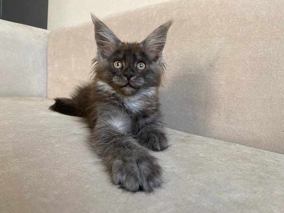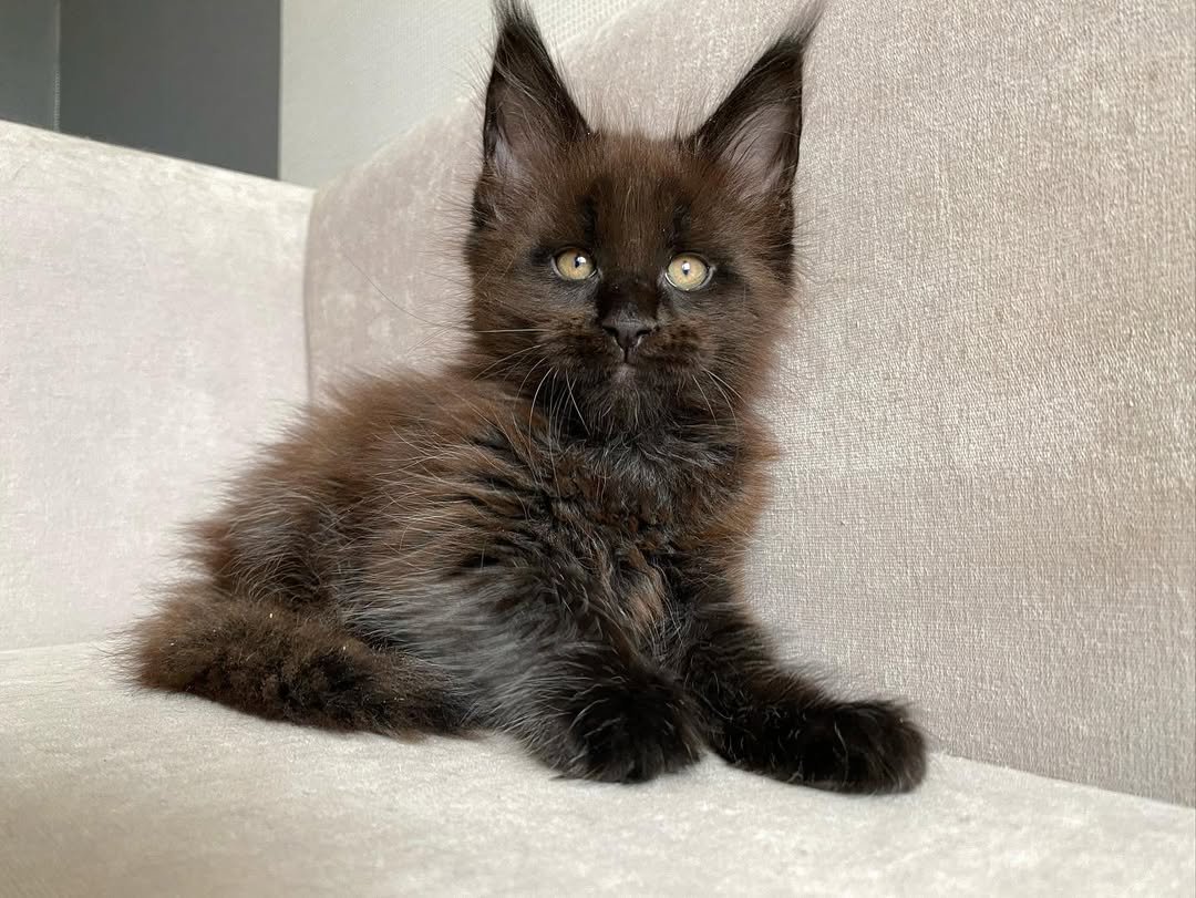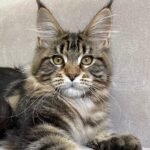 Size: Maine Coon kittens grow into one of the largest domestic cat breeds. Adults can weigh between 8-18 pounds or more.
